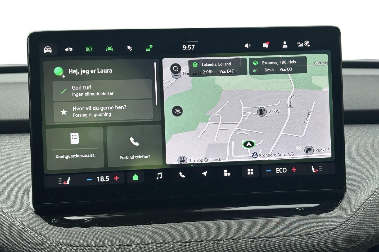 Adaptiv fartpilot, El-bagklap med Virtual Pedal, Multifunktionslæderrat med varme, 19" alufælge "Proteus", Climatronic klimaanlæg - 3 zoner, Lys- og regnsensor, Varme i forsæder, Lane Assist, Side Assist, Traffic Sign Recognition, Travel Assist, Bakkamera, Parkeringssensorer for og bag, Navigation, Phone Box med trådløs opladning, Trådløst SmartLink (Apple CarPlay/Android Auto), 5.3" Digitalt Cockpit, 13" infotainment display, 8 højttalere, Ambientebelysning i for- og bagdøre - 10 farver, Sunset - mørktonede ruder bag, Paraply i førerdøren, Design Selection - Loft, 2x USB-C porte i midterkonsollen foran, 2x USB-C stik bag